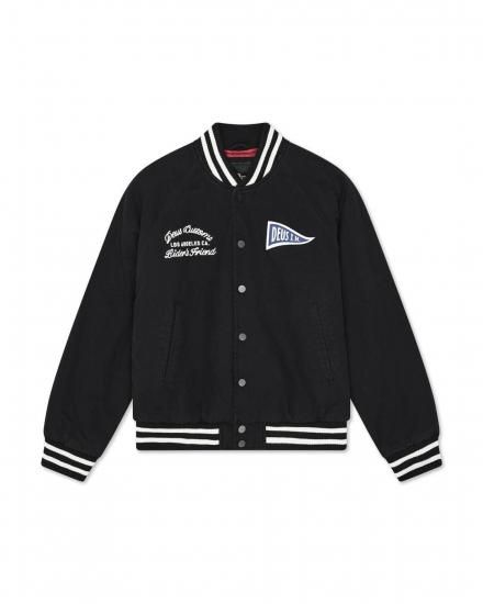 道端のピットストップや忘れ去られたハイウェイで飲むコーヒーが燃料となり、オイルまみれのノスタルジーとともに、充実した日々の感性が奏でられる。 スタジアム・ジャケットは、90年代のアスレチック・スタイルとロードサイドの仲間意識を融合させた。ベーシックなデザインのスタジアムジャンパー。カジュアルなコーディネイトに最適なジャケット。フロントにDEUSアートワーク刺繍とワッペンを配置。バックには"DEUS SPEED SHOP"のアップリケがアクセント。襟、袖口、裾のリブがスポーティーなジャケットを演出しています。