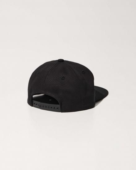 クラウンにブランドロゴのワッペン、内側スベリにネーム付き。