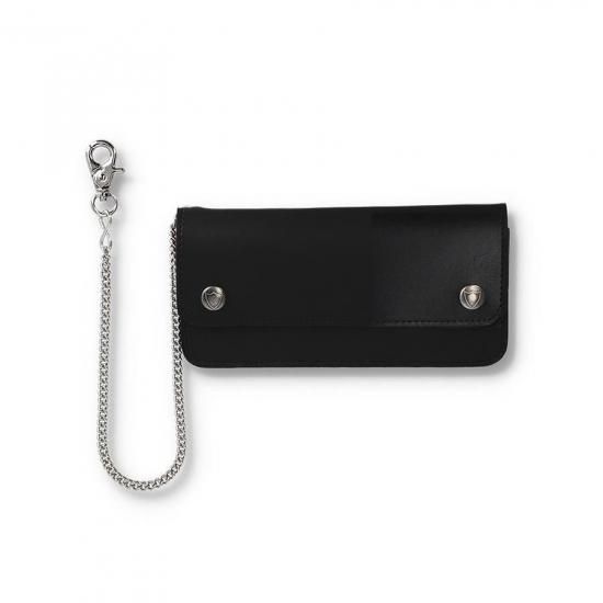 シンプルなプレーンデザインのウォレットに、ナスカンを組み合わせたウォレットチェーンが付属。